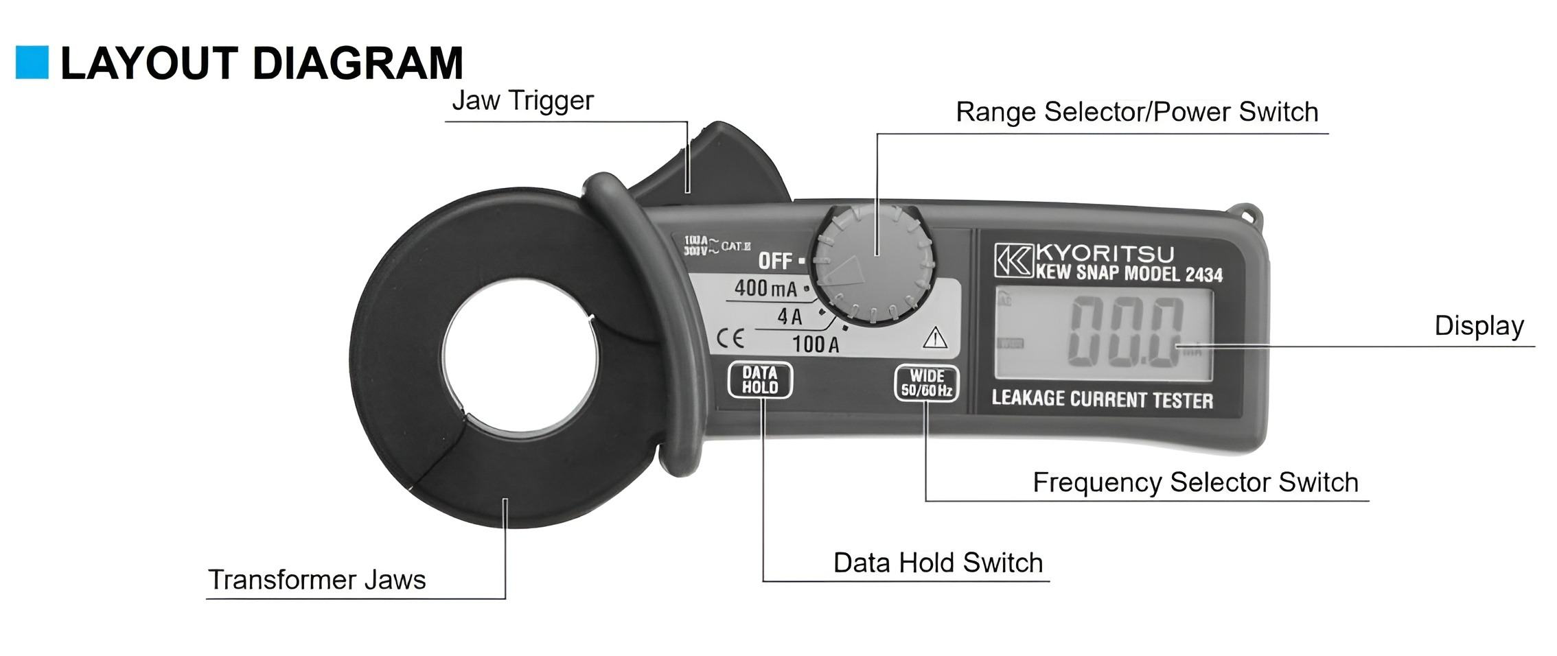 Ampe Kìm Đo Dòng Kyoritsu 2434 là một thiết bị đo điện chính xác, có thể đo dòng điện, dòng rò và các chỉ số điện khác. Sản phẩm được sản xuất bởi Kyoritsu - một thương hiệu nổi tiếng về thiết bị đo điện từ Nhật Bản. Ampe kìm kyoritsu 2434 có thiết kế nhỏ gọn, tiện lợi, an toàn và chính xác. Sản phẩm có công tắc chọn tần số để loại bỏ ảnh hưởng của sóng hài, độ phân giải 0,1mA và chịu được quá áp lên đến 3700V.