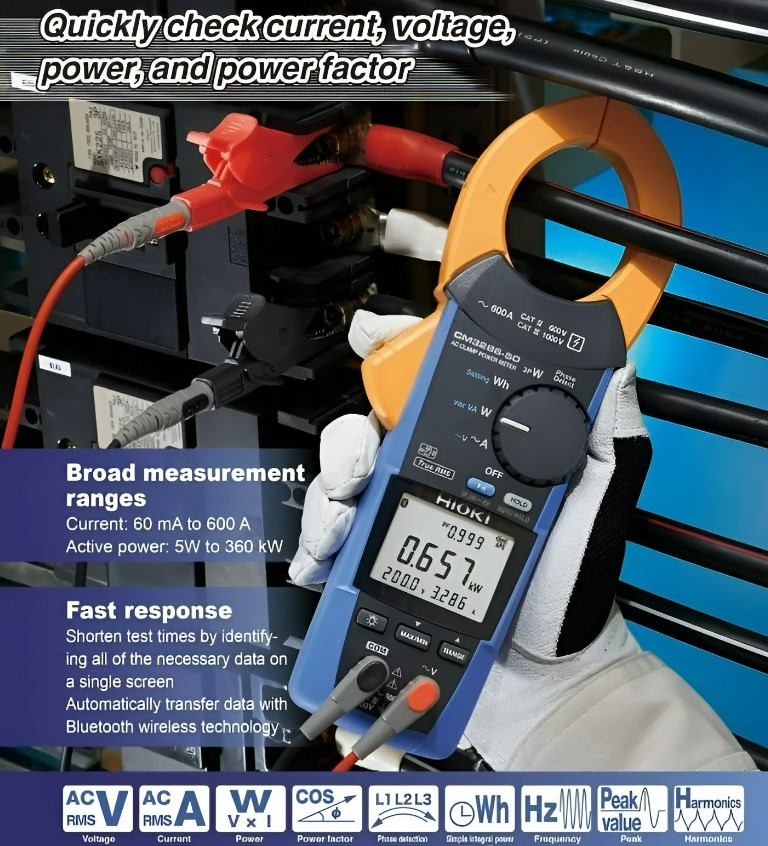 Ampe Kìm HIOKI 3286-50 là một thiết bị xách tay đo điện áp và dòng điện một cách an toàn và chính xác. Sản phẩm có thể đo nhiều thông số như điện áp, dòng điện, công suất, hệ số công suất, góc pha, điện trở, công suất tiêu thụ và kiểm tra thứ tự pha. Đặc biệt, Ampe Kìm HIOKI CM3286-50 có khả năng đo công suất một pha, ba pha không cân bằng, phát hiện trộm điện và cảnh báo khi có sự thay đổi về điện năng.