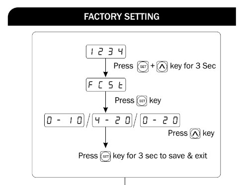 PT-100/3W/4-20mA/0-10V DC (bất kỳ Factory Set nào) |