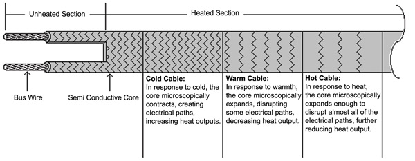 Điều đặc biệt là phản ứng nhiệt độ này diễn ra độc lập tại mỗi điểm dọc theo bộ gia nhiệt. Khi có sự chênh lệch nhiệt độ giữa các vùng, mỗi phần của cáp gia nhiệt sẽ tự động điều chỉnh mức độ nhiệt tỏa ra theo nhu cầu cụ thể của nó.