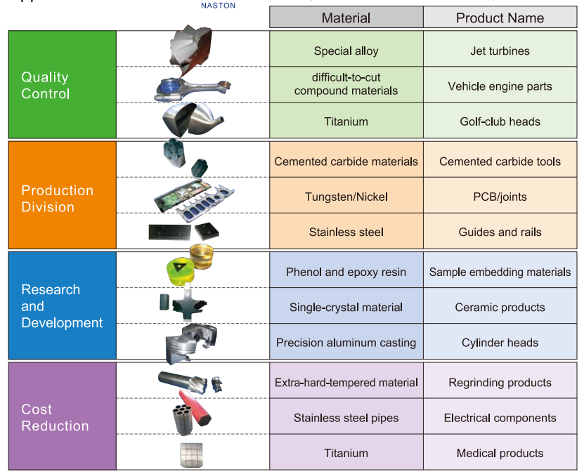 Tùy vào các vật liệu cần cắt khác nhau, ta chọn loại đá cắt thích hợp với ứng dụng từng loại vật liệu.