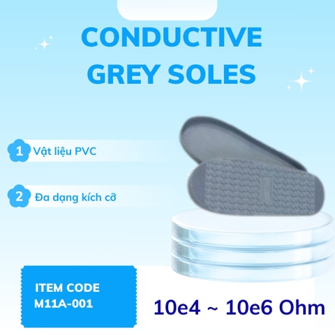 Conductive Grey Soles (Đế giày xám dẫn điện) là loại đế giày được thiết kế để dẫn điện, nhằm giảm thiểu và tiêu tán tĩnh điện trong môi trường làm việc. Đây là một phần quan trọng trong các loại giày bảo hộ chống tĩnh điện, được sử dụng phổ biến trong các ngành công nghiệp điện tử, phòng sạch, và các lĩnh vực yêu cầu tiêu chuẩn cao về an toàn tĩnh điện.