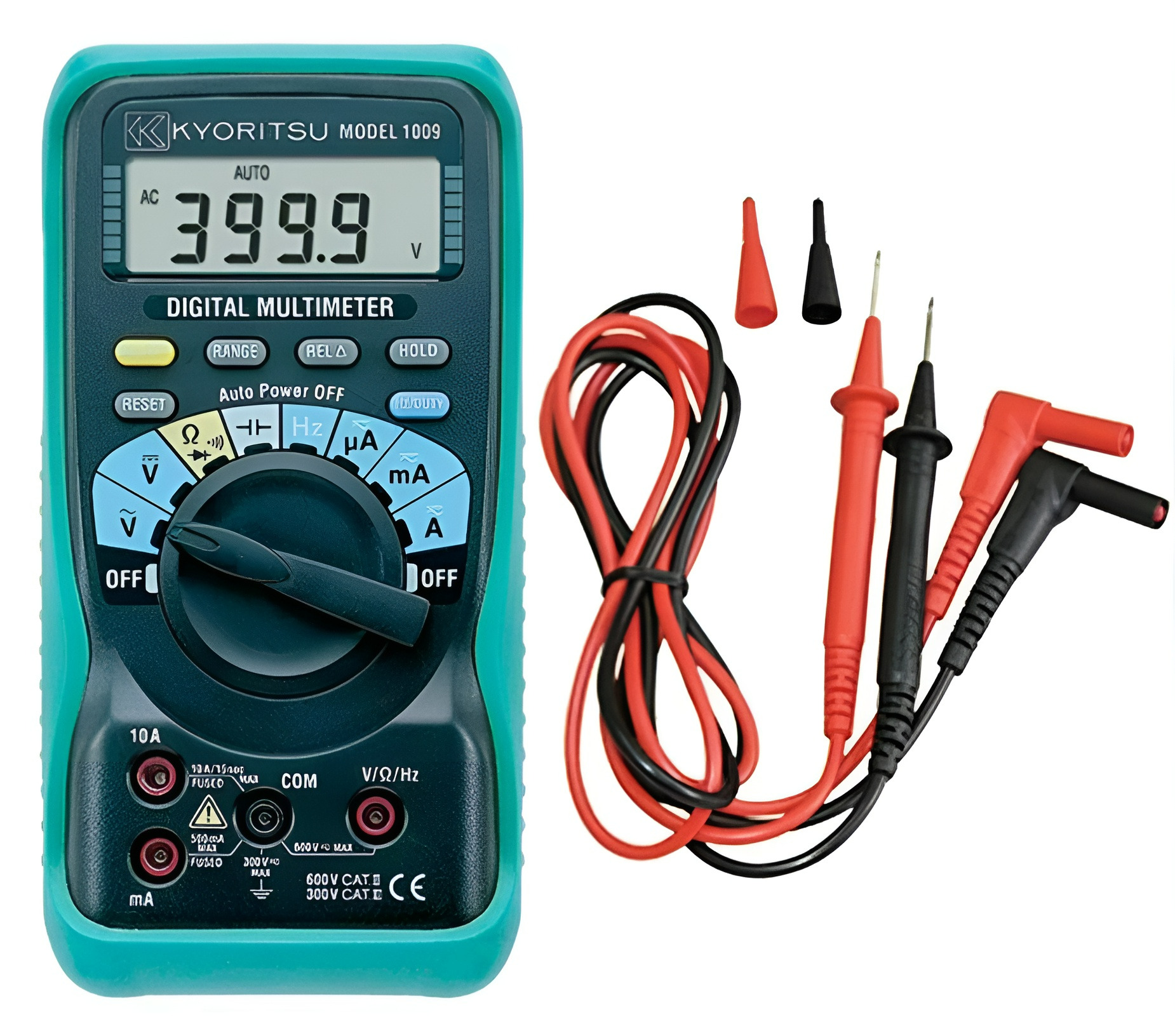 Đồng hồ vạn năng Kyoritsu 1009 là sản phẩm của hãng Kyoritsu - thương hiệu đồ dùng cơ khí điện hàng đầu Nhật Bản, được sản xuất trên dây chuyền công nghệ hiện đại. Sản phẩm có thể đo được nhiều thông số như: dòng điện, điện áp AC/DC, điện trở, đo tần số và đo thông mạch, kiểm tra diode, tụ điện,... Đồng hồ vạn năng Kyoritsu 1009 được ứng dụng khá phổ biến trong các ngành điện, điện tử, dùng để chế tạo máy móc, lắp đặt thiết bị điện tử,...