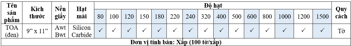 Giấy nhám TOA đen được làm từ các vật liệu chất lượng cao, bao gồm: