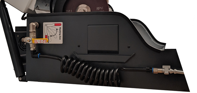 Máy cắt còn tích hợp vòi phun áp suất, giúp người sử dụng có thể rửa, vệ sinh buồng cắt sau mỗi ngày sử dụng.