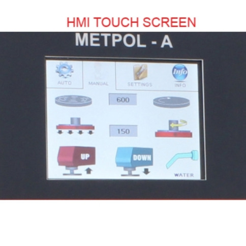 Máy mài và đánh bóng tự động Metpol A được tích hợp màn hình điều khiển HDMI giúp người dùng dễ dàng cài đặt tham số, thao tác nhanh và đơn giản trong quá trình mài và đánh bóng mẫu.