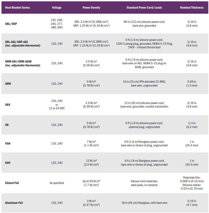 Tấm sưởi cao su silicon là sản phẩm tốt nhất hiện có. Tấm sưởi bằng vải được sử dụng cho các ứng dụng có nhiệt độ cao hơn, nơi khả năng chống ẩm không phải là vấn đề đáng lo ngại.
