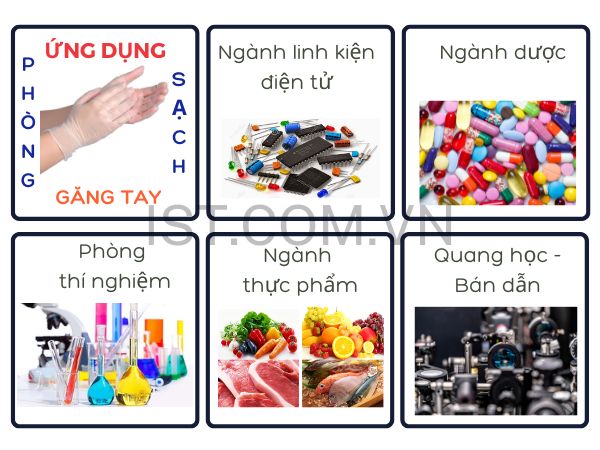 - Ngành công nghiệp sản xuất linh kiện quang học: Găng tay phòng sạch được sử dụng trong sản xuất linh kiện quang học, giúp bảo vệ linh kiện khỏi bụi bẩn và trầy xước.