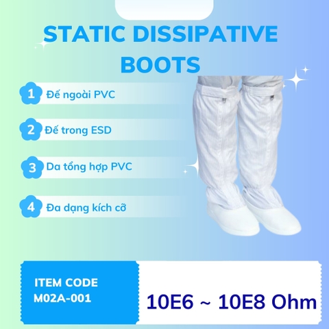 Static Dissipative Boots (Ủng phân tán tĩnh điện) là loại giày chuyên dụng được thiết kế để ngăn ngừa sự tích tụ tĩnh điện, bảo vệ cả người sử dụng và thiết bị nhạy cảm trong các môi trường làm việc. Chúng thường được sử dụng trong các lĩnh vực như điện tử, phòng sạch và các khu vực sản xuất, nơi mà tĩnh điện có thể gây ra hư hỏng cho sản phẩm hoặc gây ra nguy cơ an toàn.