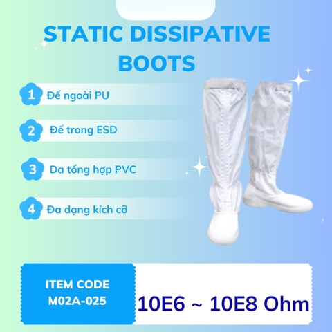 Static Dissipative Boots (Ủng phân tán tĩnh điện) là loại giày chuyên dụng được thiết kế để ngăn ngừa sự tích tụ tĩnh điện, bảo vệ cả người sử dụng và thiết bị nhạy cảm trong các môi trường làm việc. Chúng thường được sử dụng trong các lĩnh vực như điện tử, phòng sạch và các khu vực sản xuất, nơi mà tĩnh điện có thể gây ra hư hỏng cho sản phẩm hoặc gây ra nguy cơ an toàn.